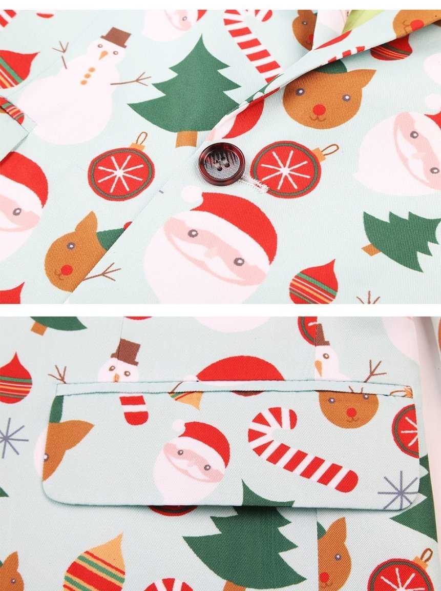 Our Slim-Fit Christmas themed Blazer is made of premium fabrics that were developed specifically for the purpose of die-cut printing the design. Hence, it is made to last you for several festive seasons/parties to come!